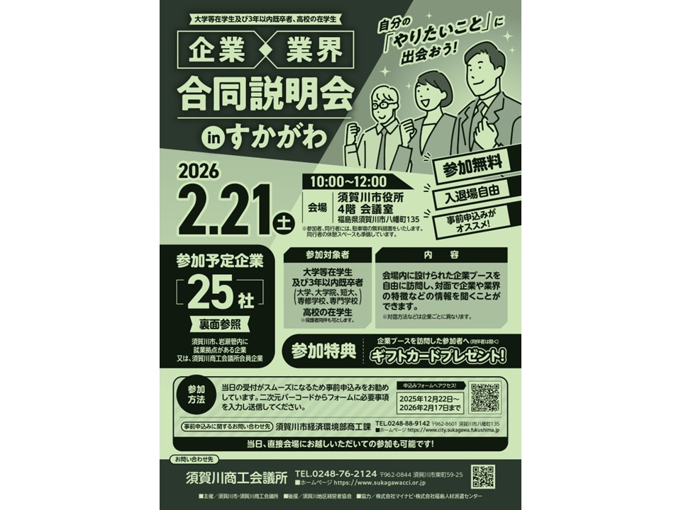 2026.1.212026年2月21日開催「企業・業界合同説明会 inすかがわ」に参加いたします。